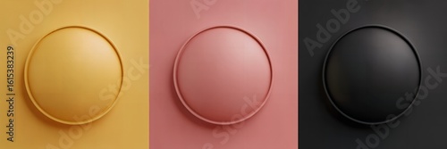 minimalist, design, circular, background, golden yellow, pink, black, aligned, horizontal, clean, modern, aesthetic, layout, lighting, soft, diffused, dimensional, quality, composition, simplicity, art, geometric, visual, texture, contemporary, elegance, symmetry, balance, space