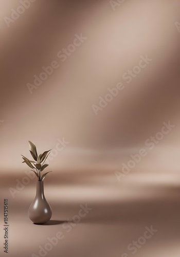vase, leaf, plant, brown, background, gradient, blurred, simplicity, minimalist, studio, interior, still, life, soft, elegant, botanical, decoration, design, floral, neutral, monochrome, warm, serene, calmness, earth, clay, natural, art, display, mock, product, space, empty, modern, contemporary