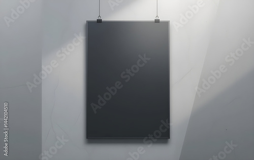Minimalist Dark Art Display: Blank Black Poster with Clips and Soft Light