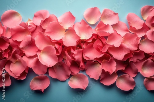 minimalist design of scattered pink rose petals on a pastel background evoking a sense of tranquility and beauty through simplicity and soft color contrasts