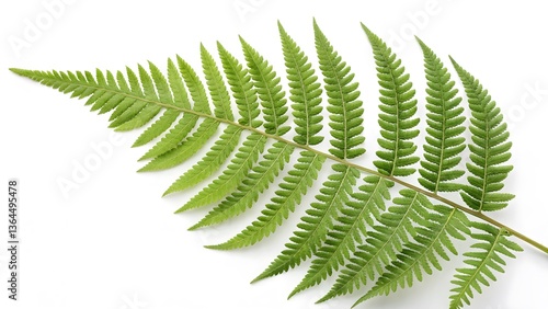 Minimalist Fern Leaf with Symmetrical Fronds, Isolated on a White Background, showcasing a minimalist and natural aesthetic, Professional Botanical Stock Photo