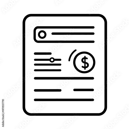 Minimalist financial document icon in a clean, modern design featuring a dollar symbol and simple line art