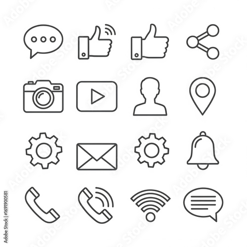 "Minimalist flat vector icon set, black and white, simple clean line design, scalable, professional, perfect for web, app, business, technology, education, travel, healthcare, finance, UI/UX, infograp