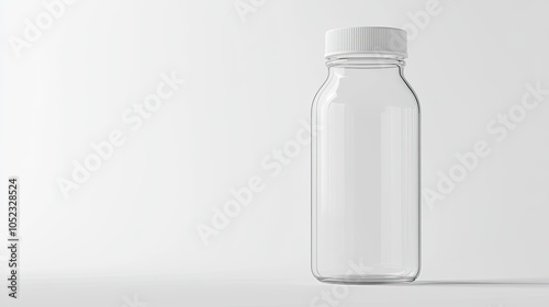 Minimalist glass water bottle with lid, focus on clean, sustainable design for eco-friendly living and waste reduction. Simple, white background.