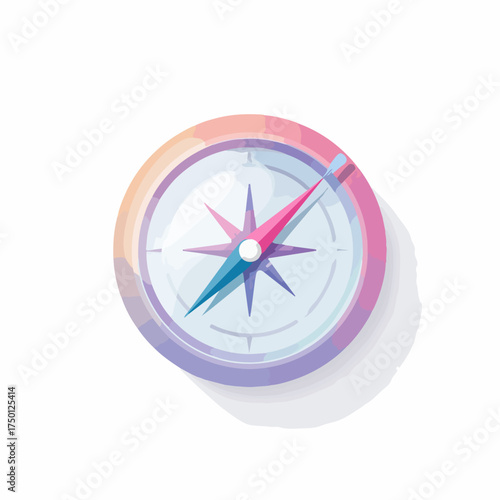 Minimalist Glossy Compass Icon in Flat Design
