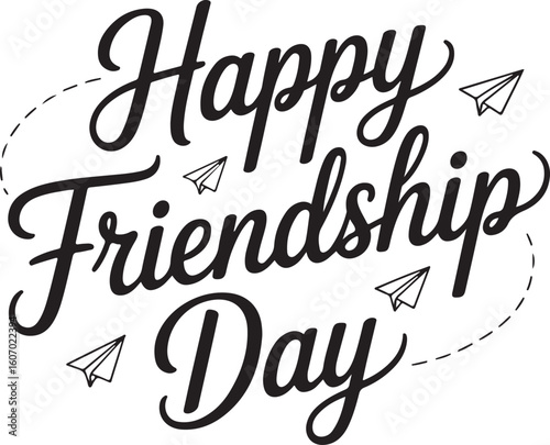 Minimalist "Happy Friendship Day" Poster with Paper Airplane Motifs and Cursive Typography
