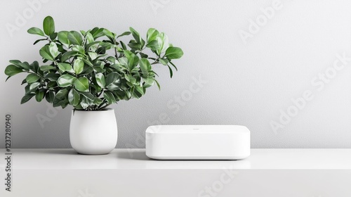plant, device, home, office, minimalist, setup, white, wall, background, interior, modern, design, technology, clean, simple, workspace, desk, room, style, decor, green, leaf, pot, table, elegant, aesthetic, calm, serene, peaceful, relaxing, comfort, productivity, sharpened, efficiency, organisation, neat, tidy, space, furniture, apartment, house