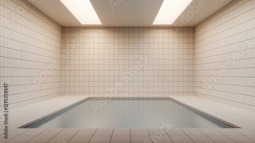 minimalist, indoor, pool, clean, line, neutral, tile, skylight, illumination, modern, architecture, serene, water, geometric, design, relaxation, spa, wellness, tranquil, symmetry, contemporary, bright, roomy, aesthetic