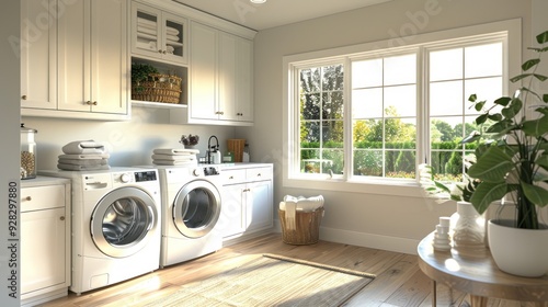 minimalist, laundry, room, washer, dryer, folding, table, built-in, cabinet, efficiency, organisation, modern, design, sleek, contemporary, minimal, decor, high technology, elegant, functional, sophisticated, space