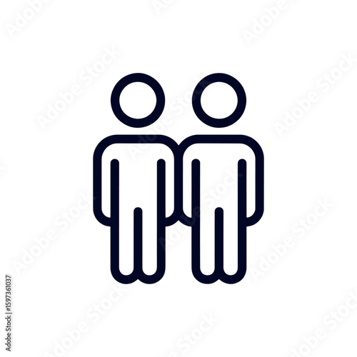 Minimalist Line Art Icon Depicting Two Figures Standing Side by Side Representing Community Connection or Partnership Conceptually Isolated