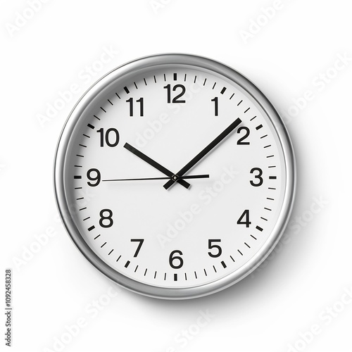 Minimalist Modern Analog Wall Clock on Isolated White Background