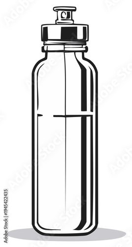 Minimalist monochrome illustration of a water bottle, fitness and hydration concept.