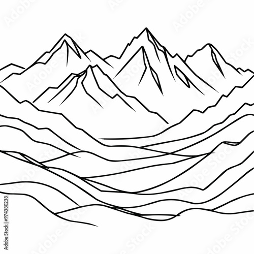 Minimalist Mountain Range Line Art
