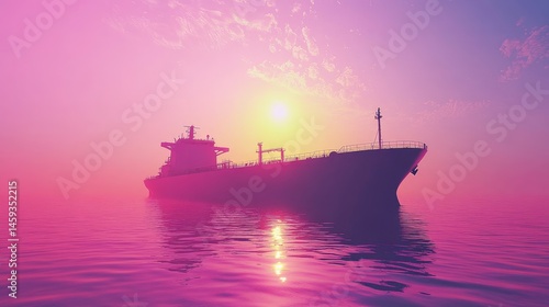 Minimalist photo of tanker silhouette on horizon under vibrant sky gradient