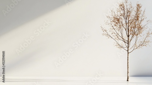 room, minimalist, interior, design, tree, bare, branch, sunlight, shadow, light, white, wall, floor, autumn, winter, nature, simple, clean, serene, calm, peaceful, space, empty, background, art, modern, contemporary, aesthetic, elegance, solitude, calmness, atmosphere, mood, style, decor, home, house, apartment, studio, scene, image, picture, graphic, illustration, rendering, three-dimensional, model