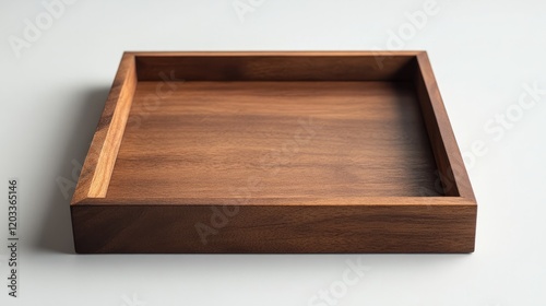 Minimalist square wooden tray with a matte finish placed on a clean white tabletop