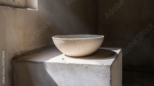 stone, bowl, display, minimalist, interior, light, shadow, texture, design, room, decoration, simplicity, warmth, artisan, handcraft, elegance, environmentally friendly, neutral, calm, aesthetic, craftsmanship, artistic, natural, cosy, ambience, surface, space, traditional, modern, pottery, organic, architecture, still life, environment, sharpened, home, art, unique, vintage, serene, luxury, elemental, clay, raw, hand-made, balance