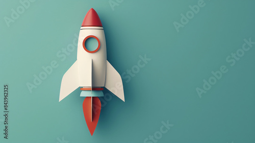Minimalist stylized toy rocket with a smooth teal backdrop, great for concepts