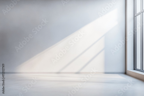 Minimalist tranquil room with a large window filling the room with natural light and minimal furniture or decor.