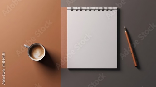 Minimalist Workspace with Coffee, Notebook, and Pen on Table