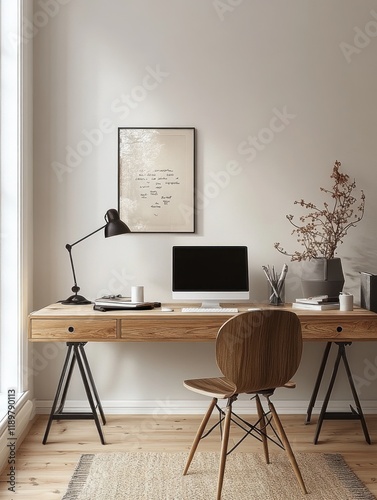 minimalist, workspace, wooden, desk, modern, lamp, scandinavian, design, soft, lighting, clean, line, simplicity, interior, decor, space, furniture, home, living, room, plant, art, background, render, three-dimensional, illustration, table, light, style, luxury, template, photo, picture, house, inside, couch, chair, sofa, pattern, print, wall, empty, exhibit, coastal, image, rendering