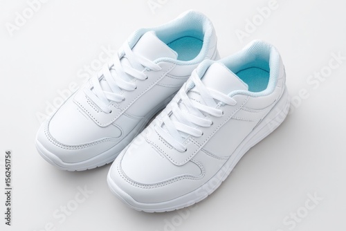 minimalistic image of athletic shoes on clean white background with ample copy space at sides