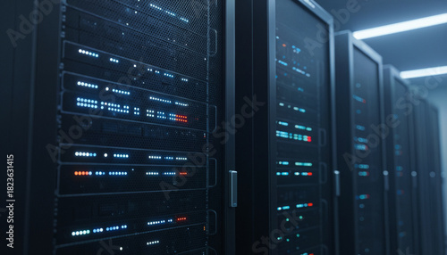 datum, center, server, rack, closeup, light, angle, modern, perspective, concentration, cooling, blue, black, grey, highlight, photo, scale, complexity, vision, dependability, design, technology, computer, system, network, communication, secure, protection, safe, connect, online, about, save, digital, future, innovative, industry, automation, equipment, control, monitoring, management