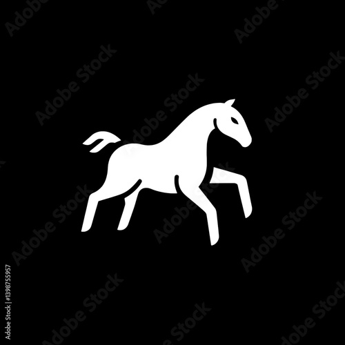 Minimalistic white horse logo design on a black background showcasing elegance and simplicity