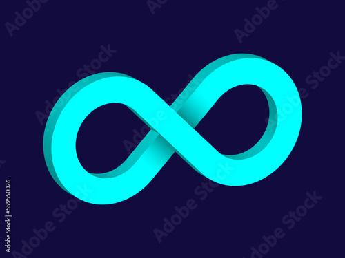 Mint 3D Infinity Symbol on Dark Blue Background. Endless Vector Logo Design. Concept of infinity for your web site design, logo, app, UI. EPS10.