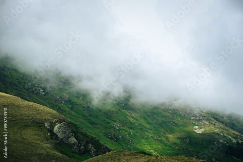 mountain, landscape, nature, mountain, cloud, sky, cloud, forest, fog, travel, view, hill, summer, grass, green, rock, tree, peak, tree, rain, mist, volcano, tour tourism, storm