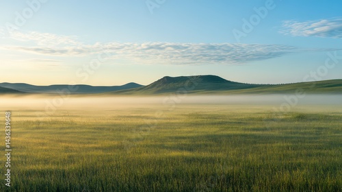 mist, dawn, sunrise, vale, hill, hill, landscape, grass, meadow, morning, yellow, green, blue, sky, cloud, nature, scenic, peaceful, tranquil, serene, atmosphere, light, sunlight, horizon, huge, expansive, open, clear, air, calm, quiet, untouched, pristine, environment, rural, countryside, pasture, field, summer, fog, nobody, fresh, beautiful, vista, scenery, remote, wide, empty