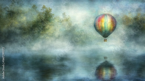 misty, morning, balloon, hot, air, river, still, colourful, landscape, dreamy, tranquil, peaceful, foggy, nature, sky, cloud, tree, calm, quiet, sunrise, sunset, high-coloured, colours, gentle, floating, upward, elevated, exploration, adventure, imagination, serene, impressionistic, pastel, delicate, soft, light, blur, texture, image, art, impression, illustration, water, bokeh, quietude, serenity, wonder, spectacle