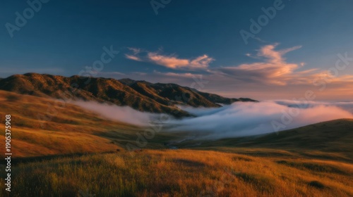mountain, fog, sunrise, hill, environment, travel, morning light, scenic view, horizon, wilderness, meadow, ridge, dawn, golden hour, olive, sunset, summer, spring, season, atmosphere, peaceful, calm, serene, wellness, calmness, inspiration, freedom, adventure, clean air, sustainability, journey, destination, background, copy space, panorama, natural light, no people, horizontal