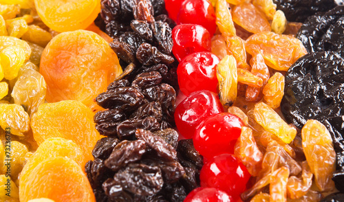 Mix variety of dried fruit close up view