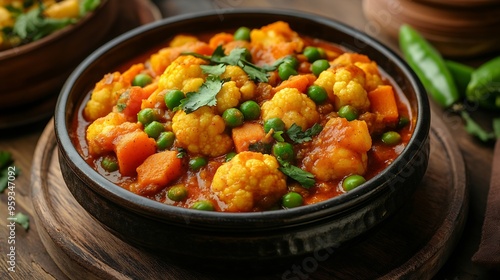 Mix vegetable curry Indian main course recipe contains Carrots cauliflower green peas and beans baby corn capsicum and paneercottage cheese with traditional masala and curry selective : Generative AI