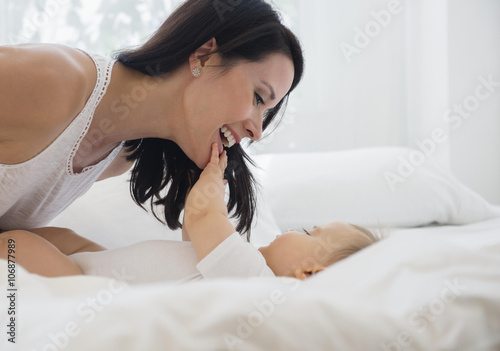 affection, authentic, baby, baby boy, bed, bedchamber, bonding, care, childhood, closeup, closeness, color image, connection, cute, day, discovery, domestic life, embracing, ethnicity, happiness, innocence, laying, lifestyle, love, mother, new jersey, new life, people, playful, playing, pleasure, selective focus, smiling, son, togetherness, two people, us, woman
