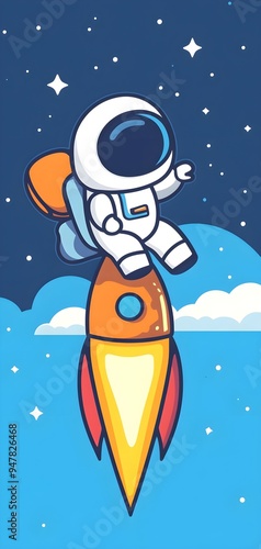 Mobile wallpaper of Cute cartoon astronaut flying in space, style of Flat Design Vector Illustration.