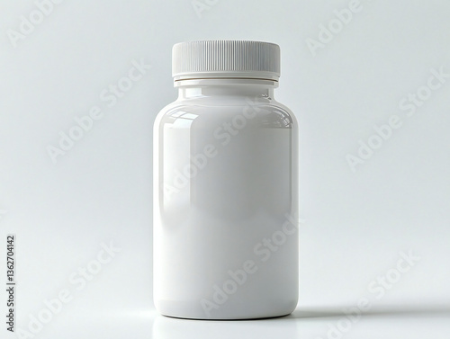 Mock Packaging Sample: Clean & Minimalist Isolated White Plastic Bottle with Screw Cap for Supplement or Vitamin Product Label Design