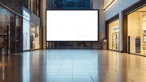 Mockup blank LED Screen billboard in front of entrance of cosmetics store in shopping mall, Empty space to insert multimedia, advertisement, generative ai