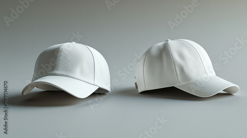 Mockup showcasing two stylish white caps on a neutral background in a minimalist design