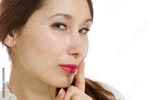 hand, head shot, adult, beautiful, caucasian, censoring, closeup, copy space, cut-out, cute, female, finger, gesture, girl, isolated, isolated on white, keeping, model, one person, people, person, portrait, quiet, secrecy, secret, sexy, signs, silence, studio shot, waist up, white background, woman, young adult, youth