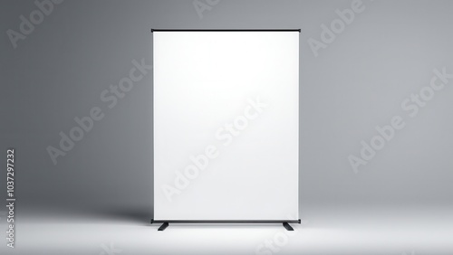 Modern 10 x 10 banner stand mockup for corporate use, featuring a creative, abstract design. Ideal for business events, this minimal pull-up banner is professional
