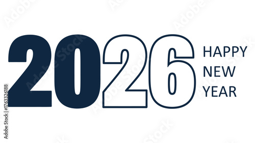 modern 2026 happy new year greeting design with bold typography in dark blue and white, perfect for festive and seasonal use