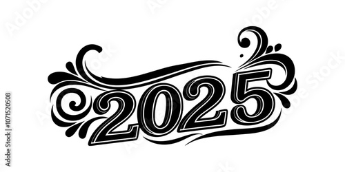 Modern and unique new year 2025 text on white background