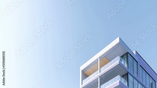 apartment, building, architecture, modern, contemporary, minimalist, design, exterior, facades, balcony, blue, sky, residential, urban, city, real estate, property, home, dwelling, structure, construction, elevation, window, glasses, sleek, line, purple, hue, vibrant, colours, geometric