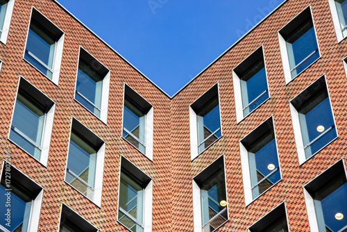 architecture, building, modern, geometric, design, window, brick, facades, urban, contemporary, structure, exterior, texture, sky, daylight, city, environment, aesthetic, line, angle, perspective, pattern, construction, material, residential, commercial, space, symmetry, visual, detail, landscape, urbanism, innovation, style, engineering, craftsmanship, element, view, modernism, creativity, visual arts, composition