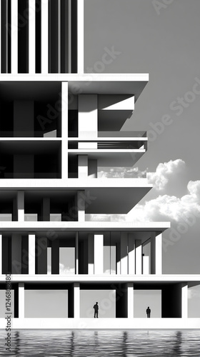architecture, modern, building, structure, design, minimalism, facades, geometric, line, shape, monochrome, perspective, space, urban, level, creativity, exterior, contrast, symmetry, form, sunlight, shadow, environment, layout, surface, element, functionality, aesthetic, construction, contemporary, style, material, height, artistry, innovation, skyline, open space, residential, artistic, visual, professional, dweller, landscape, atmosphere