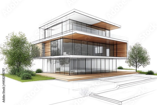 architecture, modern, rendering, glasses, wood, design, building, home, house, exterior, facades, contemporary, structure, residence, property, estate, construction, style, architectural, plan, blueprint, elevation, perspective, visualisation, vignetting, project, diagram, illustration, art, drawing, creative, artistic, detail, presentation, model, concept, luxury, minimalist, sustainable, environmentally friendly, innovative, serene, peaceful, natural, sunlight, geometry, line, clear
