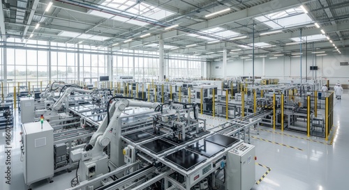 factory, industry, automation, robotic, manufacturing, production, technology, assembly, robot, engineering, warehouse, industrial, modern, machine, precision, futuristic, efficiency, facility, innovation, workspace, business, logistic, conveyer, operation, system, component, equipment, digital, smart, future, workplace, semiconductor, automotive, electronic, bright, roomy, minimalist, clean, progress, growth, global, development