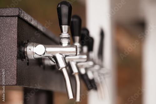 Modern beer taps in a row